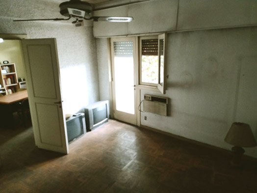 -HABITACIÓN DE 4,30 X 4,80 METROS CON PISO DE MADERA Y PUERTA PASANTE A BALCÓN CON VISTA A LA AV. MITRE.