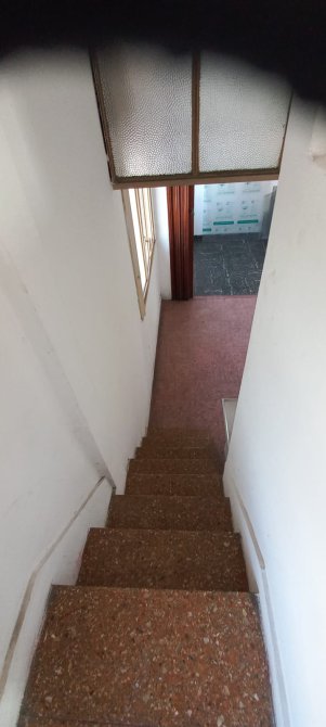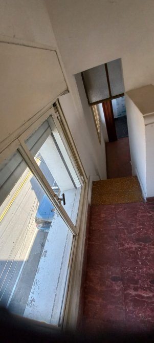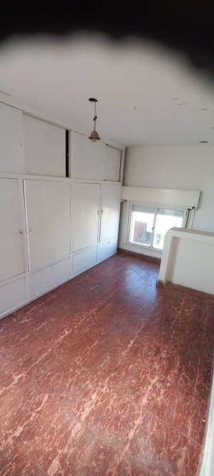 -Habitación en desnivel de 2,70 x 5,70 metros con piso de madera plastificado recientemente, baulera y ventana con vista a calle Lacarra.