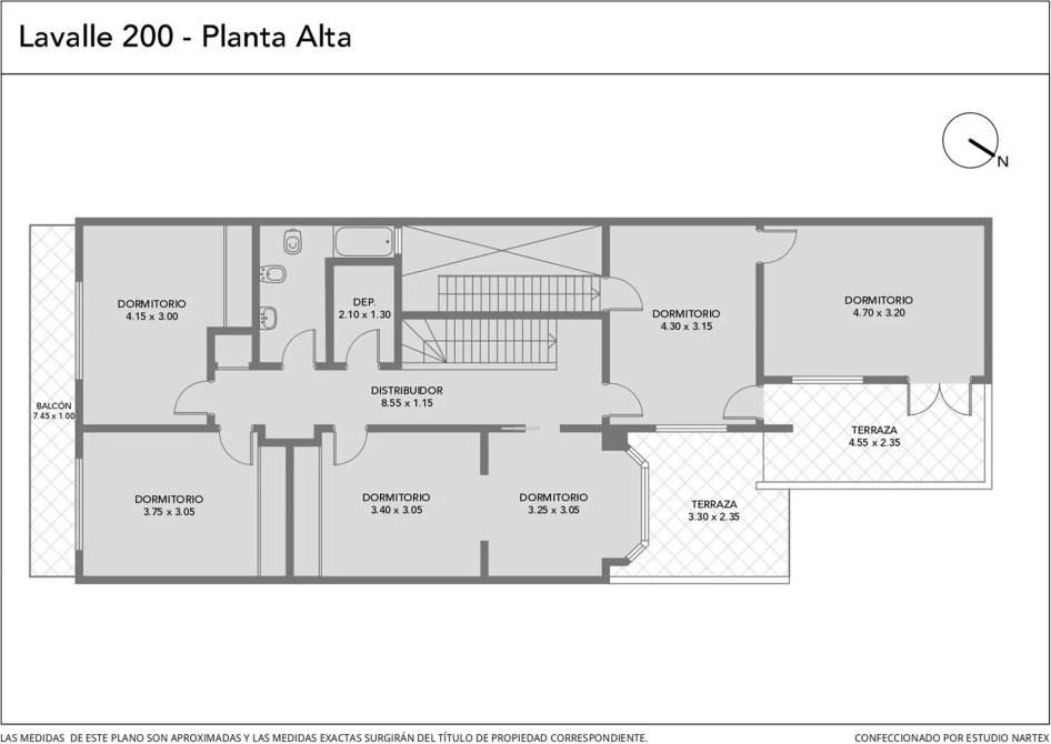 planta alta: tres dormitorios, una dependencia, y un baño completo.