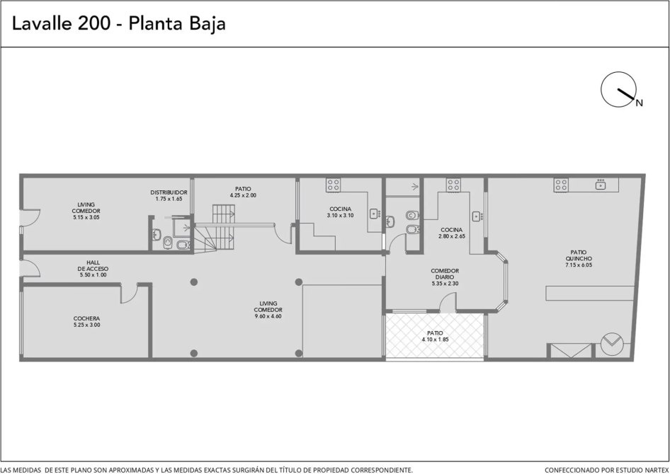 planta baja: gran living comedor doble altura, cocina con comedor diario, baño completo, quincho y patio.