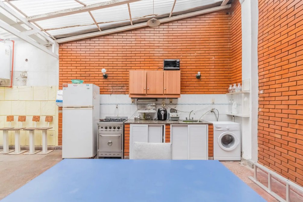 Casa secundaria: en la planta baja, living comedor, baño completo, patio cubierto y cocina.