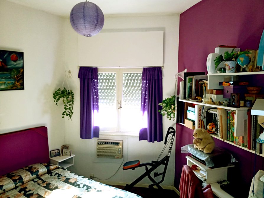- Dormitorio de 3.20 x 3.60 metros con piso de madera y ventana con vista a la Avenida.