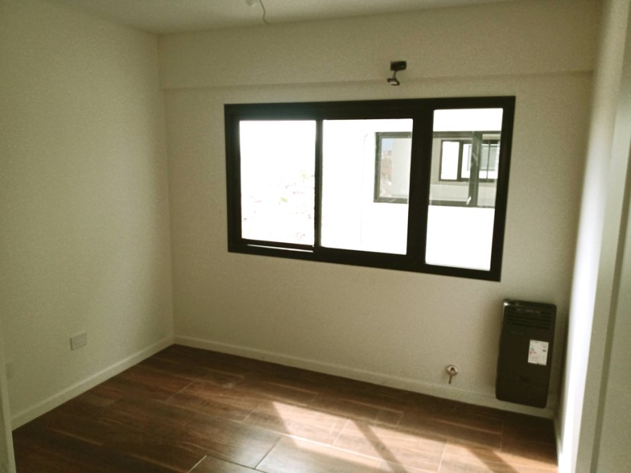-Habitación principal de 3 x 3.70 m con placard empotrado, estufa de tiro balanceado y ventana con vista despejada a la Avenida Belgrano.