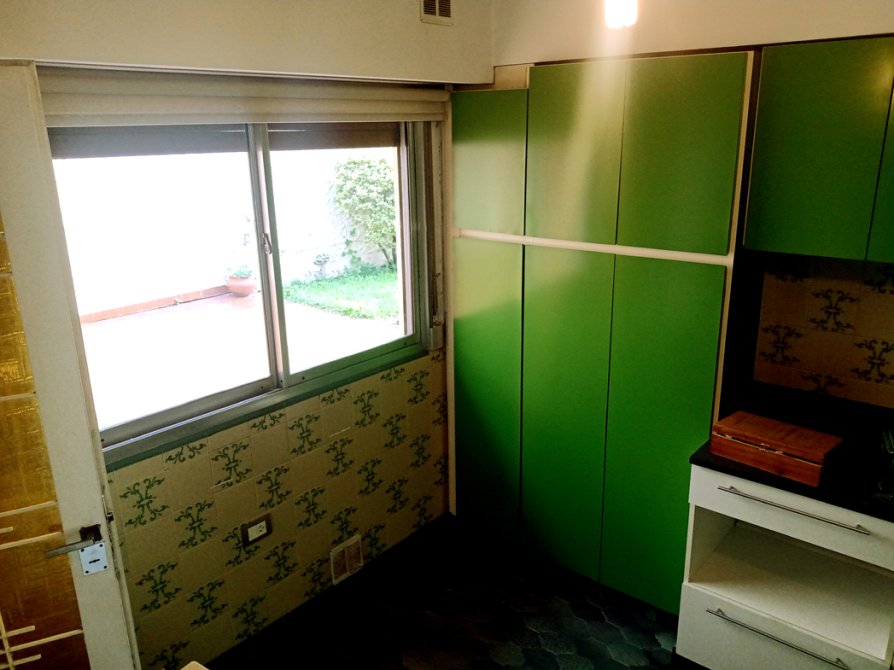 -Cocina-comedor de 3 x 4,30 m², equipada con muebles bajo mesada, alacenas y ventana con vista al patio.