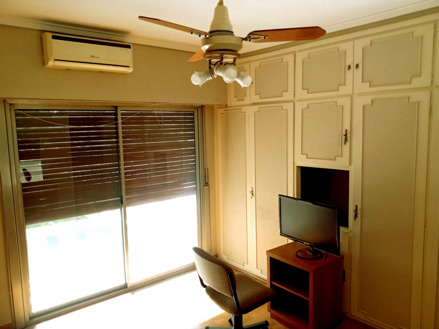 -Habitación principal de 3,70 x 3,70 m² con placard empotrado y ventanal con acceso a la terraza.