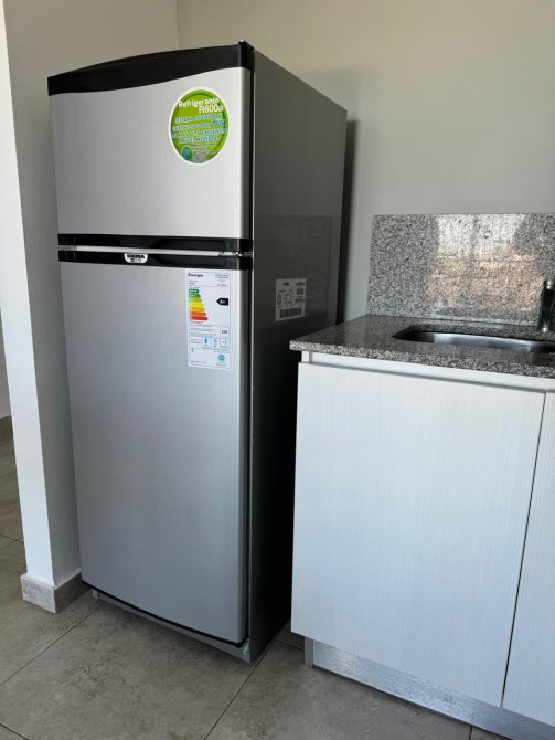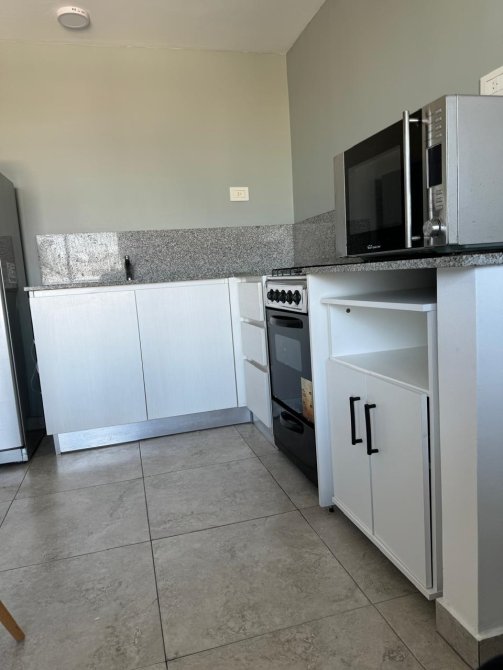 - Cocina equipada con muebles bajo mesada y artefacto de cocina