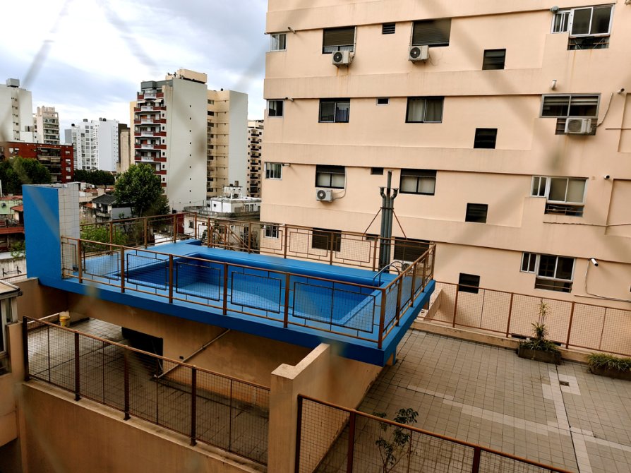 Ubicado en el 5° piso del edificio, que cuenta con seguridad, piscina y quincho de uso común, el departamento ofrece una superficie cubierta de 40 m², distribuidos de manera funcional: