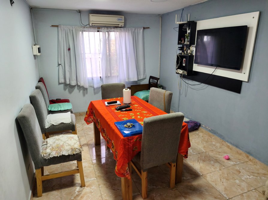 -Living-comedor: 3 x 4,80 m, con hogar a gas y ventana con vista al frente.