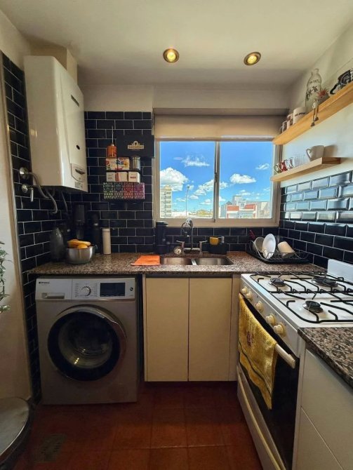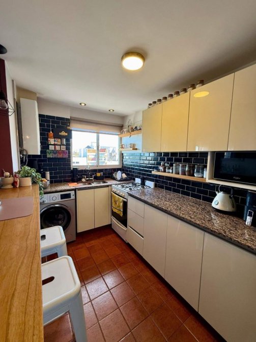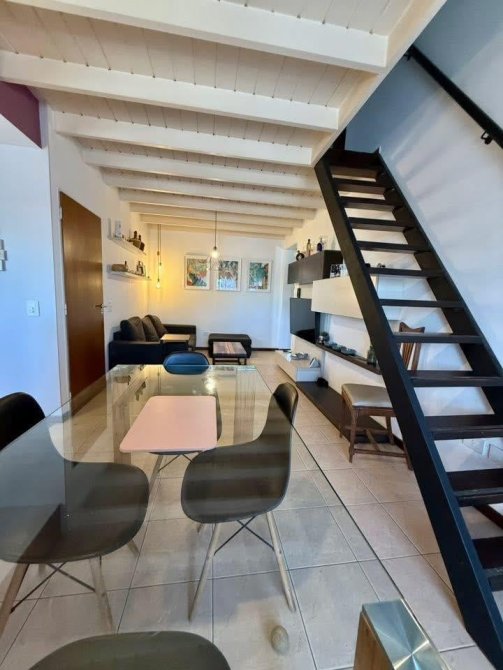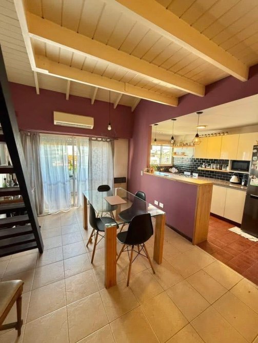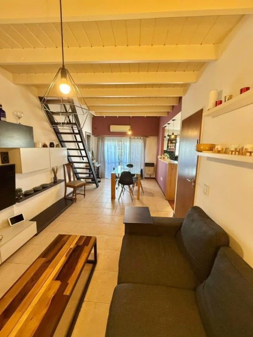 -Amplio living comedor de 3 x 7 m, muy luminoso, equipado con estufa y split frío/calor.