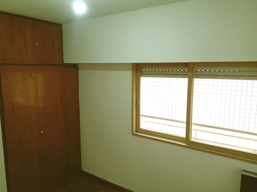 -Dormitorio de 2.40 x 2.70 metros con placard empotrado y piso de madera.