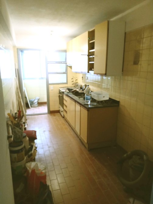 -Cocina de 4.60 x 1.90 metros con muebles bajo mesada, alacenas y artefacto de cocina.
