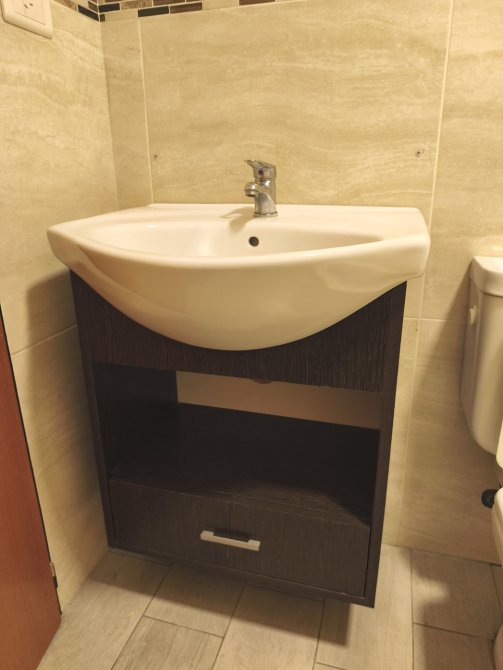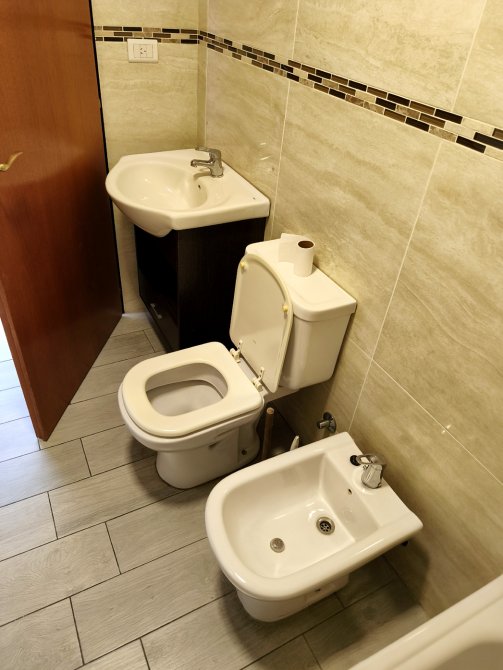 -Baño completo: 2.80 x 1.50 m, con bañera, ventana con ventilación natural, inodoro con mochila, bidet y vanitory con estante y cajón (sin espejo).