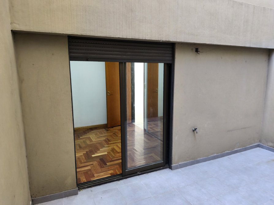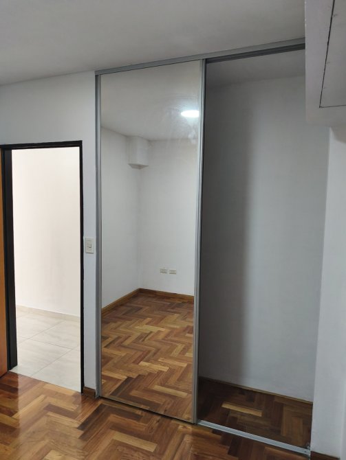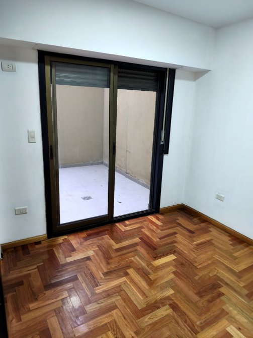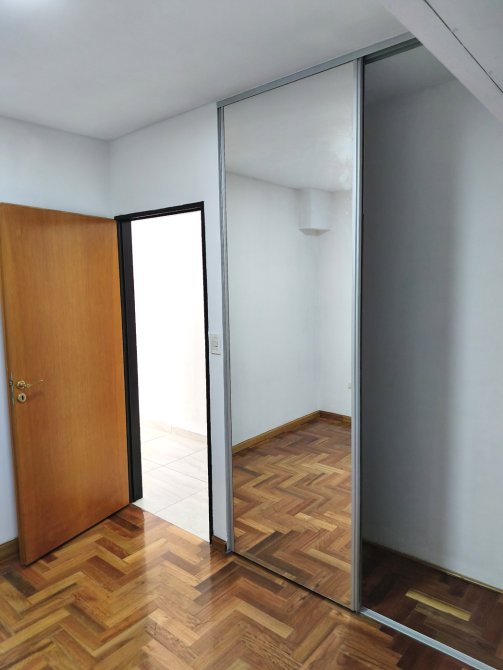 -Habitación: 3 x 3 m, piso de madera en excelente estado, placard empotrado (sin interiores) con dos puertas corredizas, una de ellas con espejo. Ventanal con acceso a patio.
