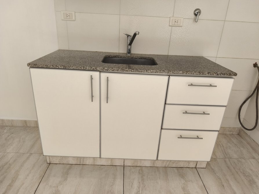 -Muebles bajo mesada (dos puertas y tres cajones) y alacenas con cinco puertas más un estante ideal para microondas.