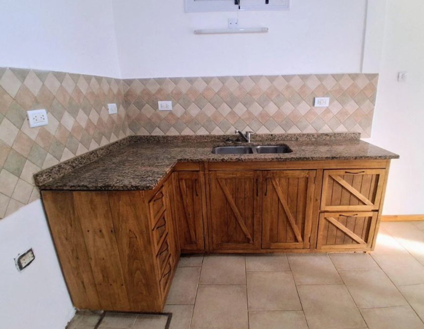 -Cocina equipada con mesada, bacha doble, grifería y preinstalación para lavarropas.