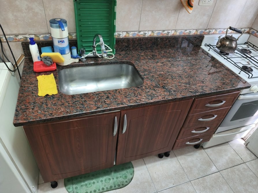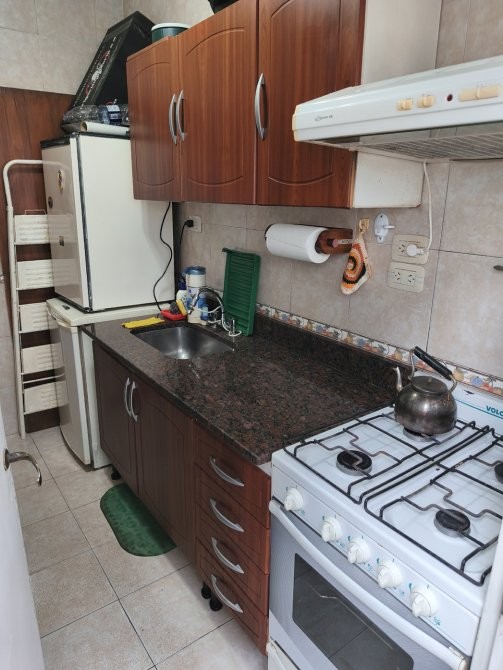 -Cocina equipada con muebles bajo mesada y alacenas, artefacto de cocina, calefón y salida a balcón/lavadero.