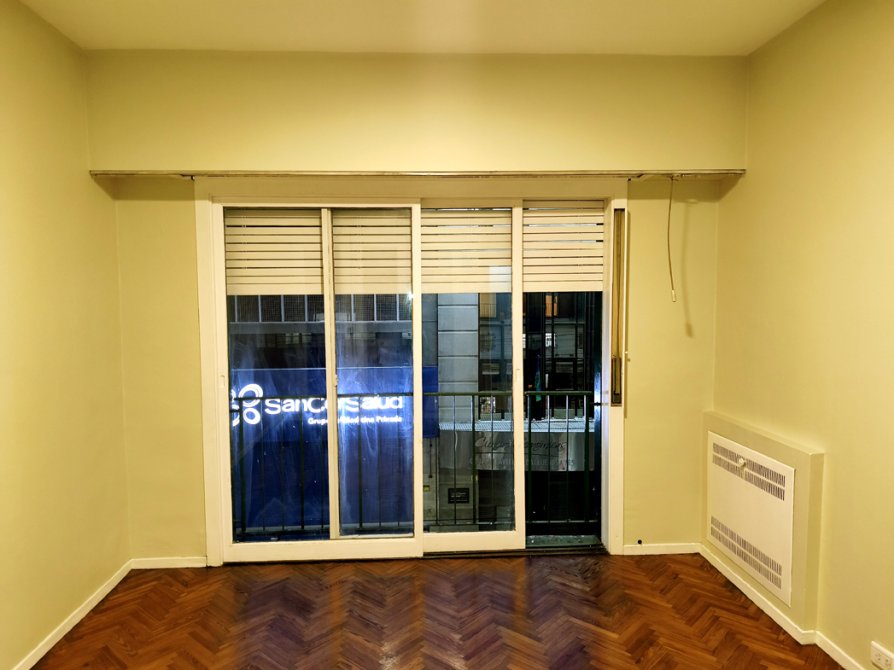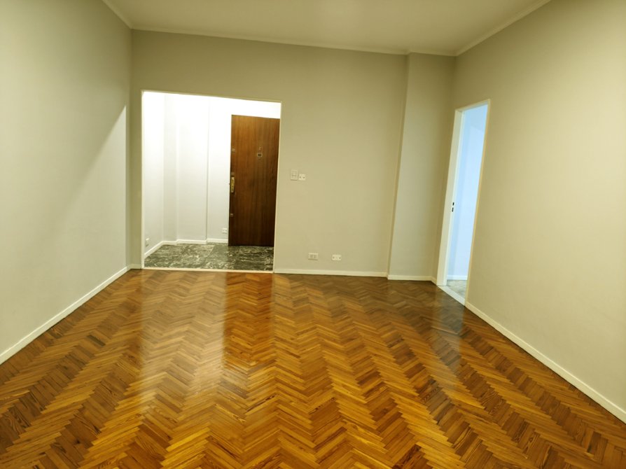 Living comedor: 4,00 x 6,00 m – Piso de madera y amplio ventanal con vista a calles Monseñor Piaggio, San Martín y Av. Mitre.