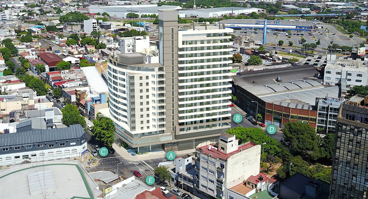 PALAÁ GREEN TOWER se encuentra situado sobre la calle Palaá extendiendo su terreno hasta las calles Maipú y Mariano Acosta.
