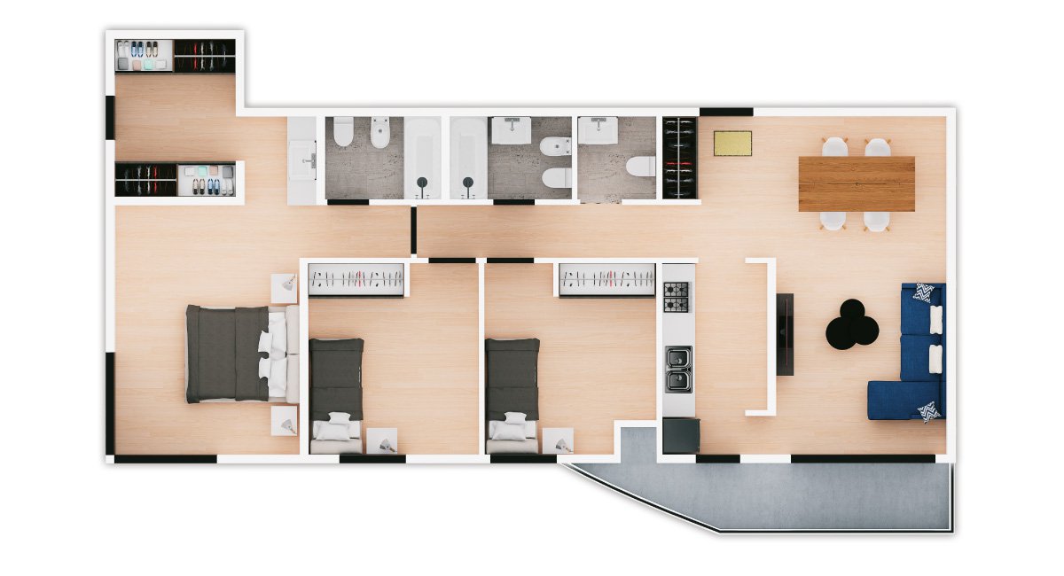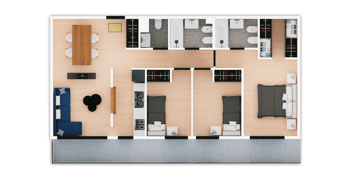 PALAÁ GREEN TOWER le ofrece unidades residenciales de categoría, desde monoambientes hasta departamentos de 1, 2 y 3 dormitorios, también existe la posibilidad de unir dos o más unidades para ampliar la cantidad de ambientes.
