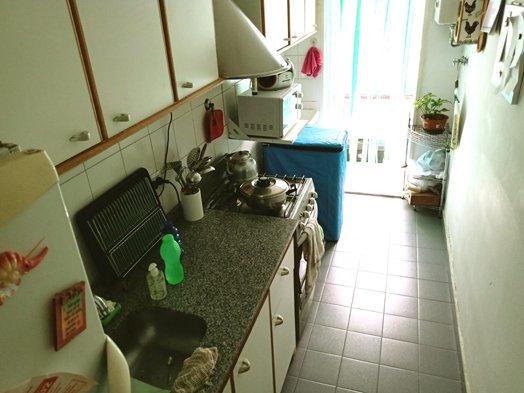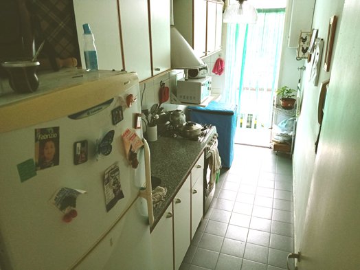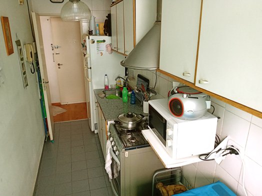 - COCINA DE 4,20 X 1,50 METROS CON MUEBLES BAJO MESADA Y ALACENA, LAVADERO INTEGRADO Y PUERTA CON PASO A BALCÓN CORRIDO