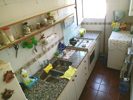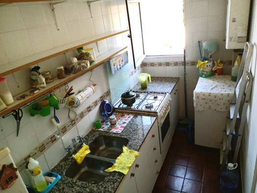 -COCINA 1,50X3,50 MTS. CON MUEBLES BAJO MESADA Y LAVADERO INTEGRADO.