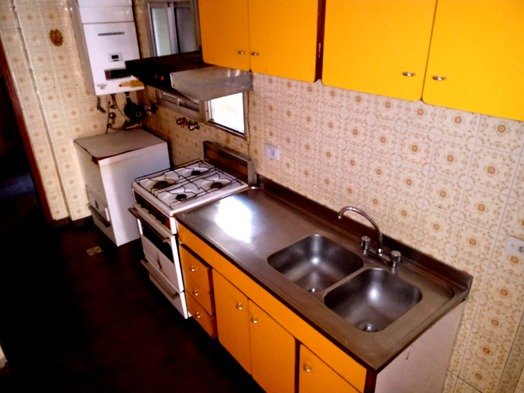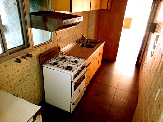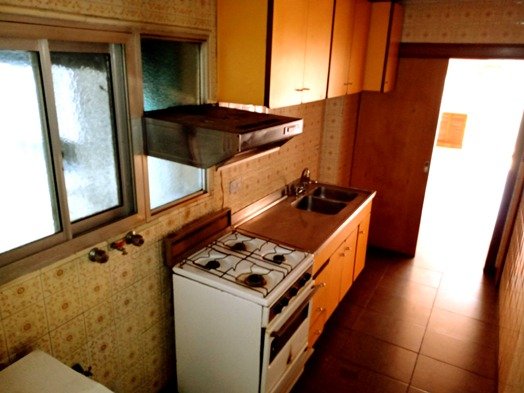 -COCINA CON MUEBLES BAJO MESADA, ALACENAS Y VENTANA CON VISTA AL PATIO.