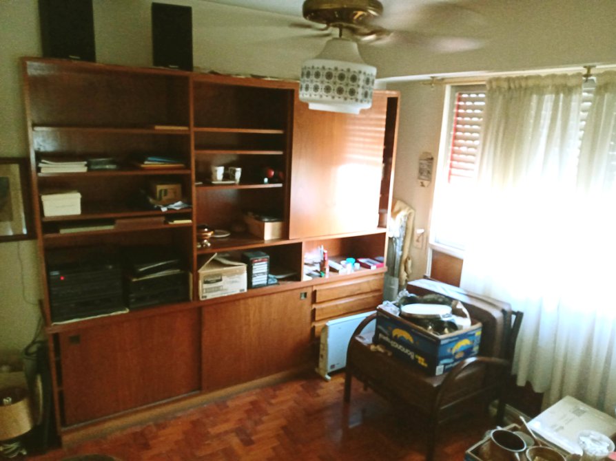 -Habitación de 3,60 x 3,20 metros, con piso de madera , equipo de frío (antigüo), placard empotrado con baulera y ventaca con vista a Salvador Soreda.