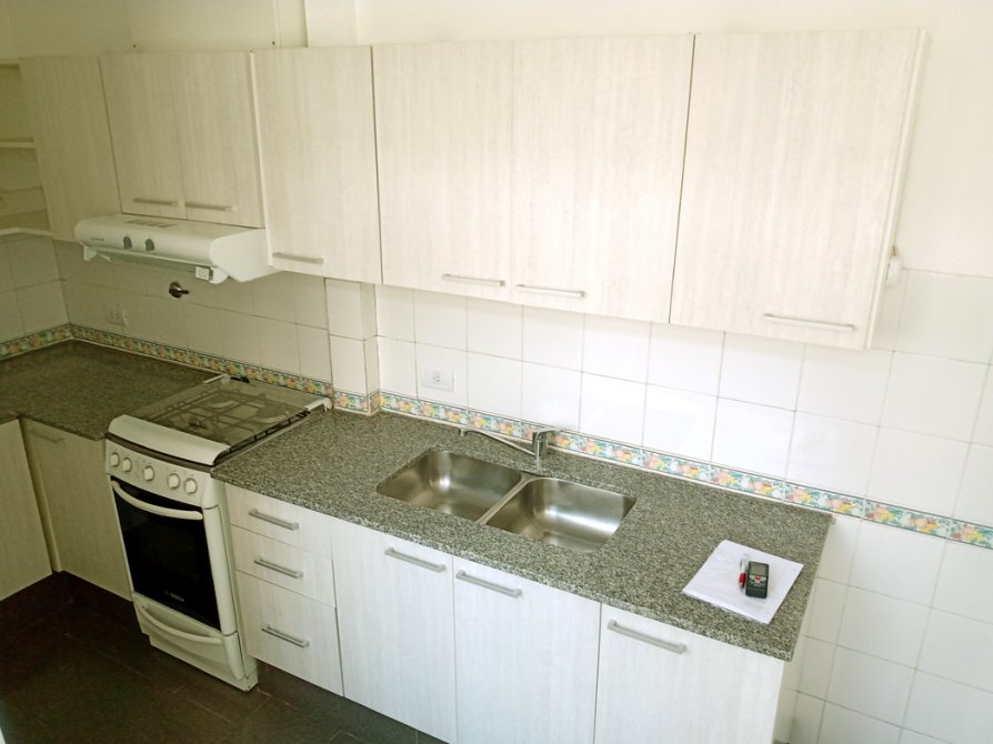 El departamento se encuentra en un 2do piso por escalera, al ingresar hacia la izquierda se encuentra el living con pisos de pinotea plastificados recientemente, espacio de guardado, balcón al frente, y conexión de gas para instalar una estufa tiro balanceado. Hacia la derecha se encuentra la cocina comedor, con grandes ventanales que le dan luz natural todo el día. La cocina cuenta con muebles bajo mesada, alacena, conexión para el lavarropas, estufa tiro balanceado, cocina horno a gas, extractor purificador de aire y calefón individual.