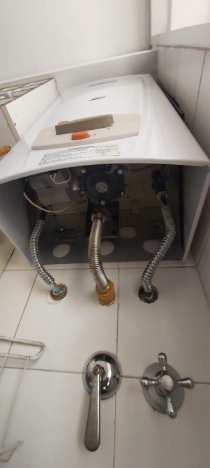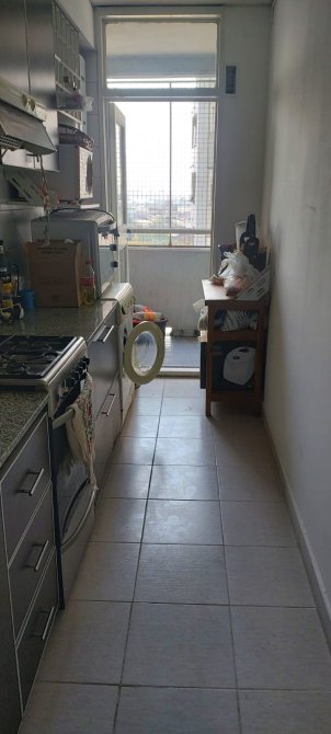 -Cocina de 1,50 x 4,50 metros con muebles bajo mesada, alacenas y lavadero. El calefón y los pisos cerámicos son nuevos.