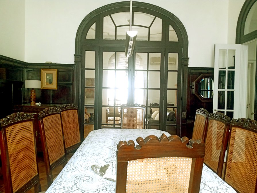 - Hall de Recepción: Amplio espacio de 3.80 x 3.60 m, con piso de madera y techos altos adornados con vitraux.