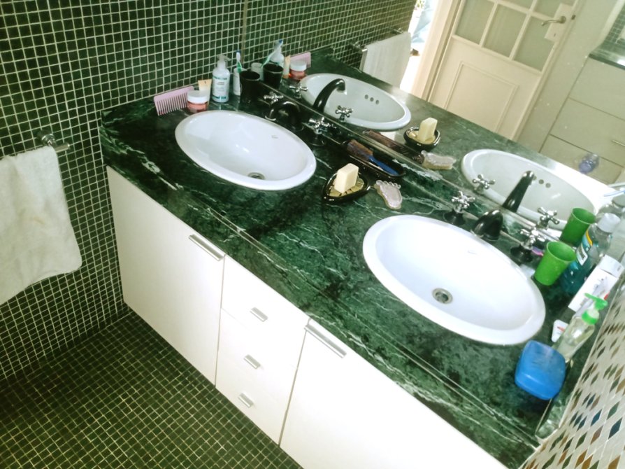 - Baño de Recepción: Elegante baño de 1.30 x 2.70 m, con amplio espejo y mesada de mármol.