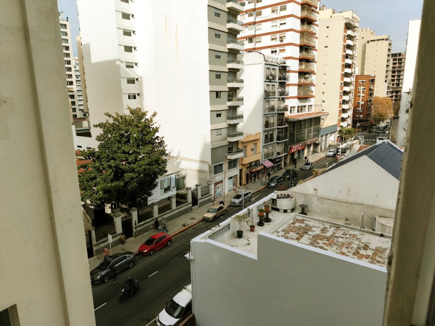 Extractor, artefacto de cocina y parrilla a gas natural separada. -Baño de servicio con ducha (1,70 x 3 m). -Comedor amplio (4,30 x 4 m) con estufa de tiro balanceado y ventana con vista lateral a calle Italia. -Living (3 x 3,40 m) con pisos de madera. -Pasillo de distribución (0,90 x 2,20 m). -Dormitorio principal (3,50 x 3,50 m) con: