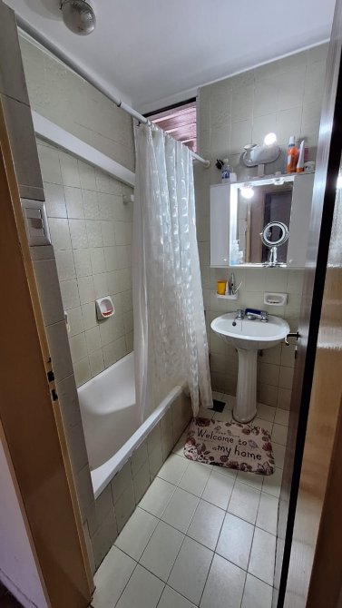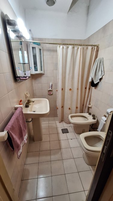Baño completo: 2.20 x 1.60 m – Con inodoro, bidet, lavamanos, espejo con luminaria y bañera.