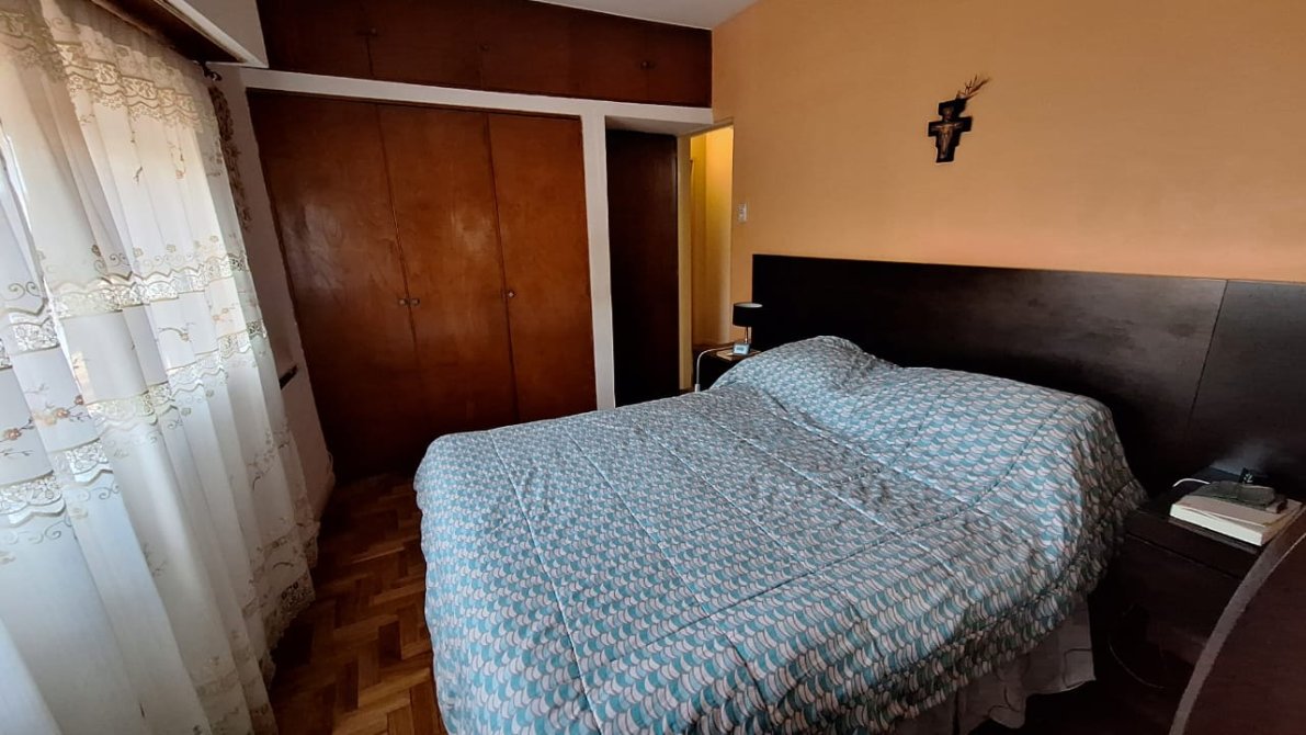 Dormitorio principal: 2.30 x 4.00 m – Piso de madera, placard empotrado, ventana con vista al frente.