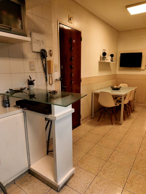 Amplio ambiente de 3,60 x 6,60 m, con piso de madera y gran ventanal con salida al balcón al frente, que brinda excelente luminosidad y ventilación. -Cocina:
