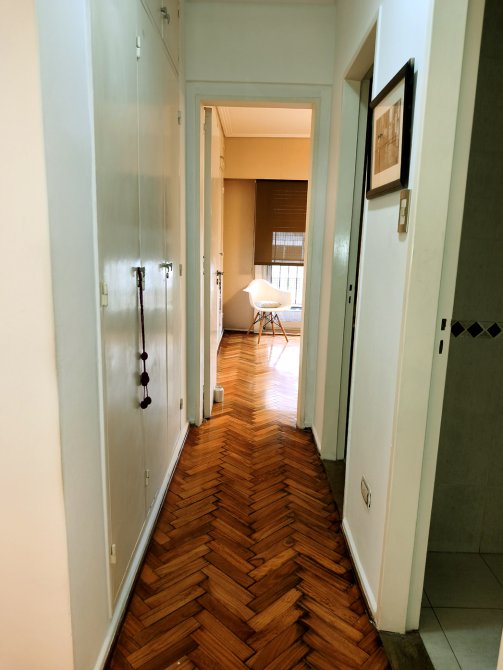 De 3 x 3,50 m, con placard empotrado y piso de madera. -Pasillo de distribución:
