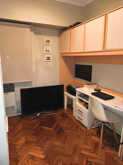 De 2,40 x 2,70 m, también con piso de madera, placard empotrado y mueble a medida con escritorio y baulera. -Tercera habitación: