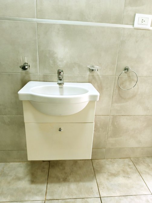 -Baño completo: 2,50 x 2,00 m, con vanitory, inodoro, bidet y bañera.