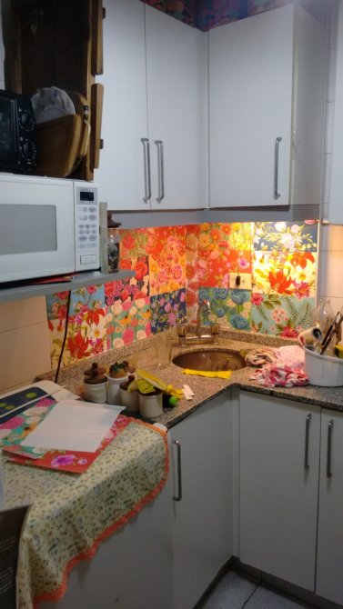 Muebles bajo mesada de tres puertas y alacenas de tres puertas.