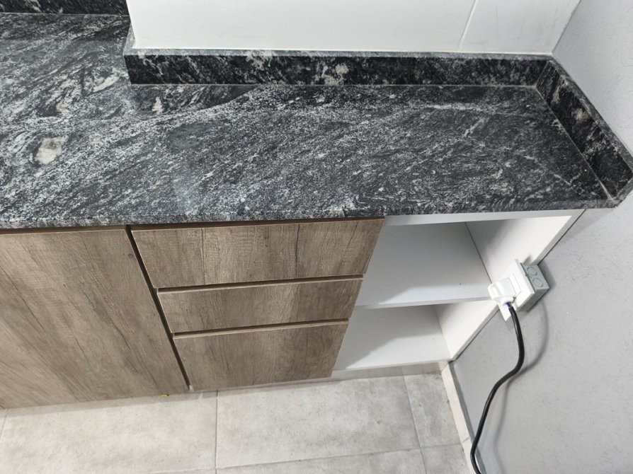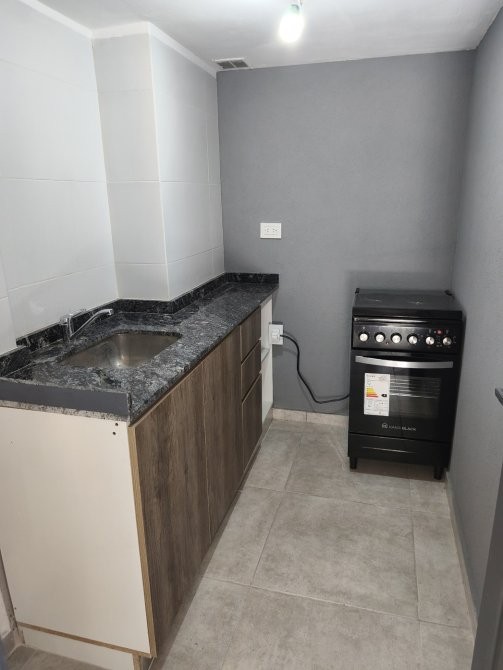 -Cocina con muebles bajo mesada y artefacto de cocina instalado.