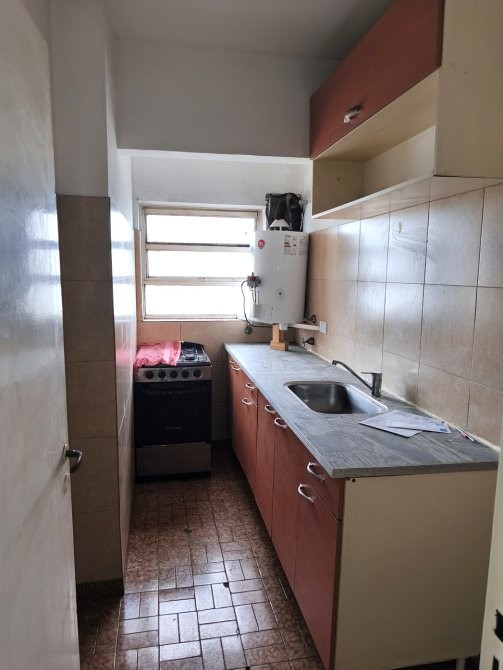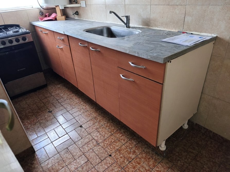 -Cocina (1,50 x 3,50 m) con muebles bajo mesada y alacena. Artefacto de cocina instalado.