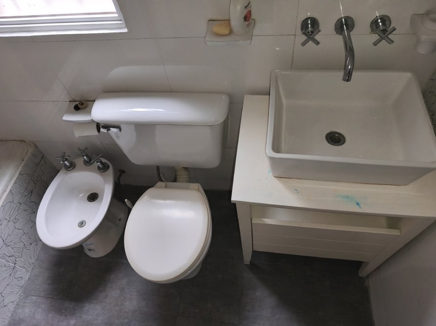 -Baño completo (1,60 x 2,60 metros) con inodoro, bidet, vanitory con pileta, espejo, accesorios y ventilación natural.