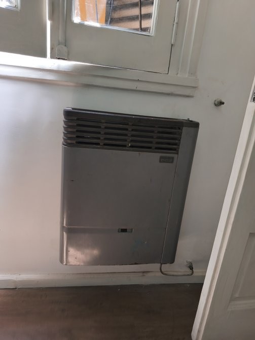 -Dormitorio principal de 3.70 x 4 metros con placard, ventana al patio, luminarias y estufa a gas tiro balanceado marca Emegé.